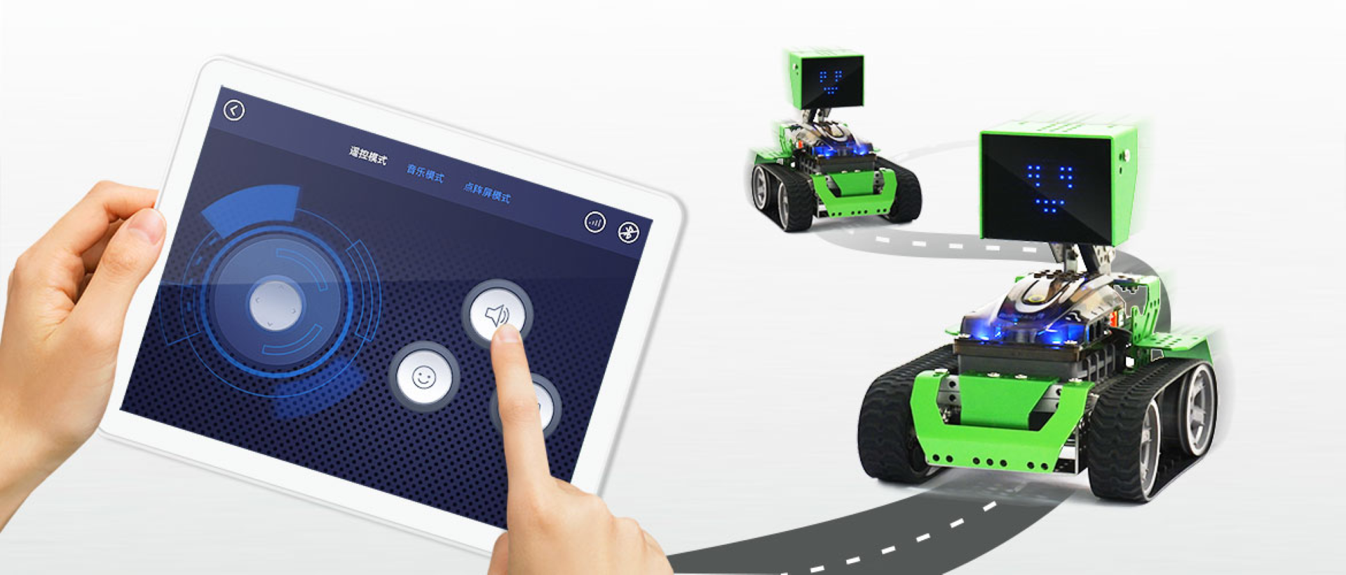 入門套件,無需任何要求。打開和播放,嵌入式蜂鳴器,用於快速音樂創作;智能線跟踪模式,只需通過用戶友好的應用程序進入您的機器人世界。